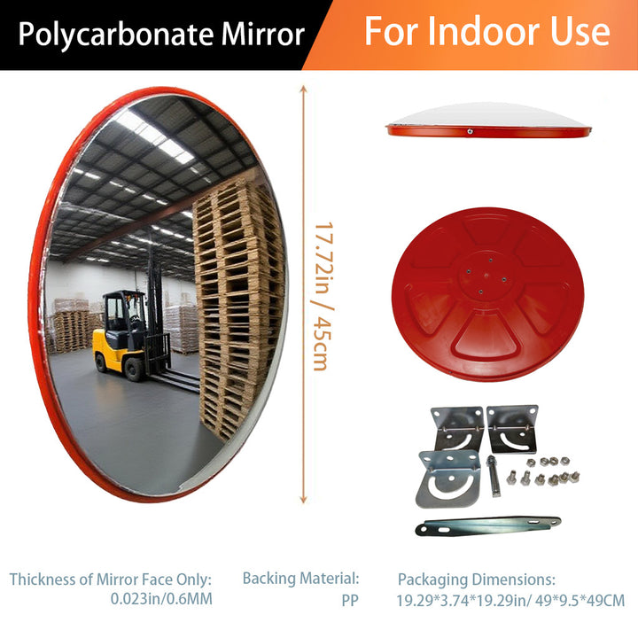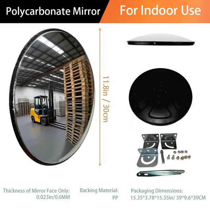 Ideal for retail stores, hallways, and office spaces for increased security and visibility. Easy to install with impact-resistant polycarbonate mirror.